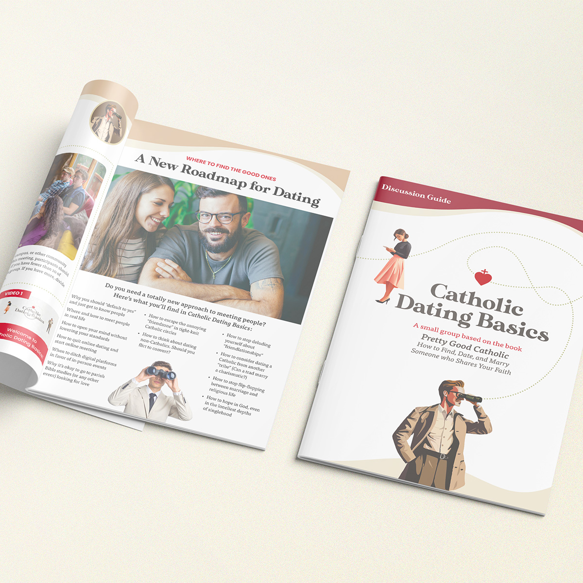 Discussion Guide for participants in “Catholic Dating Basics” small groups. Includes an intro on the difficulties of dating in the modern world, plus everything needed for the seven small-group sessions: readings, thought-provoking questions, and a weekly challenge.