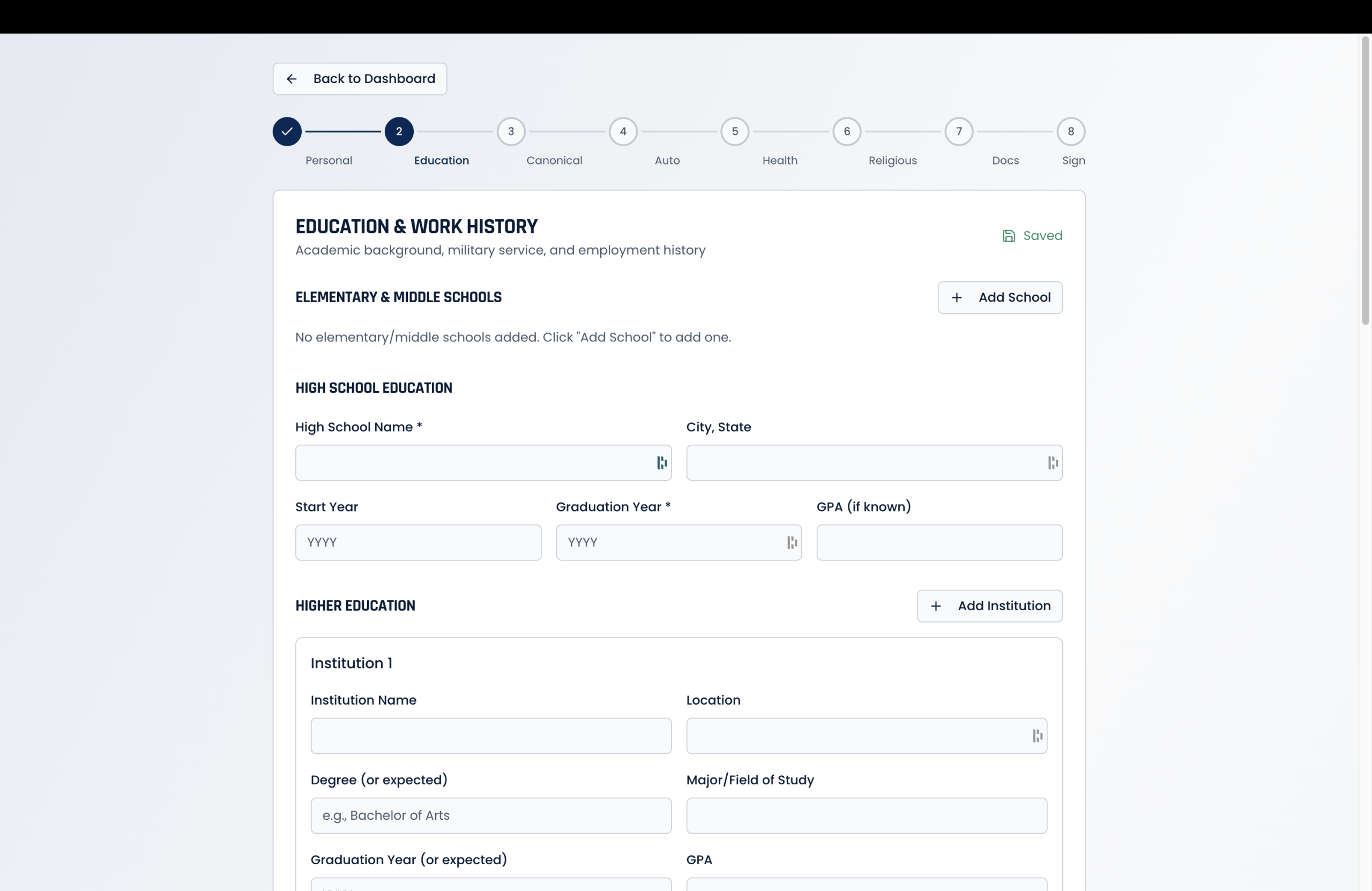 Auto-save progress for applicants